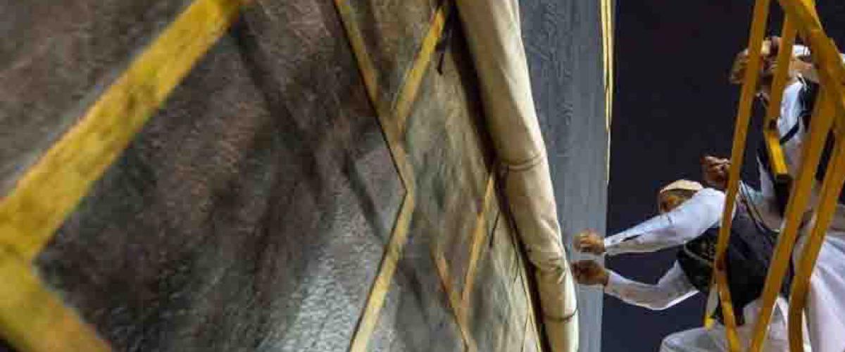 اداره کل امور مسجدالحرام ومسجدالنبی(ص) از طریق کارگاه بافت پرده کعبه مشرفه در طول سال به مراقبت و نگهداری از پرده کعبه میپردازد.