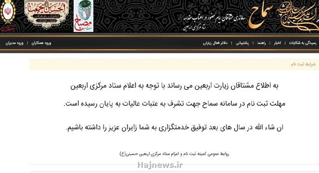 رئیس سازمان حج و زیارت گفت : سامانه سماح امروز یکشنبه 28 مهرماه با مصوبه ستاد اربعین کشور تعطیل شد.