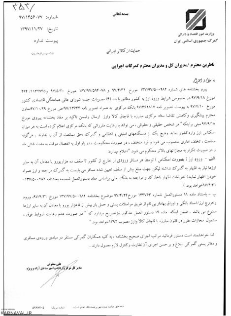 در بخشنامه گمرک چنین آمده است: