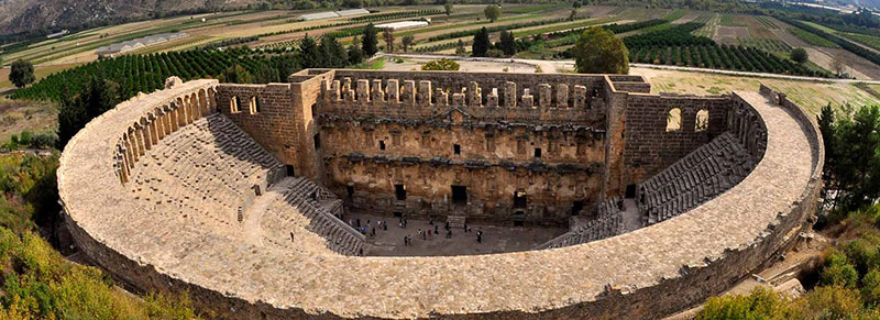 تئاتر آسپندوس یکی از بهترین جاذبه های گردشگری آنتالیا است که به خوبی از آن محافظت شده است. این تئاتر شاخصه اصلی شهر رومی باستانی بوده است و 12000 صندلی دارد که معمولا پراز تماشاگرانی است که دوست دارند اجراهای اپرای بین المللی آنتالیا و فستیوال باله را مشاهده کنند.همچنین می توانید از آثار باستانی دیگر در نزدیکی این تئاتر مشهور مثل باسیلیکا، آگورا و قنات رومی دیدن کنید.